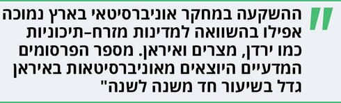 "ההשקעה במחקר אוניברסיטאי בארץ נמוכה אפילו בהשוואה למדינות מזרח תיכוניות כמו ירדן, מצרים ואיראן. אתה יודע שבאיראן לומדים 2.5 מיליון סטודנטים? שמספר הפרסומים המדעיים היוצאים מאוניברסיטאות באיראן גדל בשיעור חד משנה לשנה? שערב הסעודית משקיעה סכומי עתק במשיכת מכוני מחקר אוניברסיטאיים אליה? פיתוח מדע הוא עיסוק יקר ומתייקר. הקמה של מעבדת מחקר מתקדמת עולה מיליוני דולרים. הוסף לכך את מיעוט המרצים הבכירים מחוץ לארץ המלמדים באוניברסיטאות שלנו, לעומת נתח גבוה של מרצים זרים בכל המוסדות הגלובליים להשכלה גבוהה. מבחינה זו אנחנו כמעט אי בודד. היתרון הטכנולוגי־מדעי שלנו בסכנה ברורה וממשית".