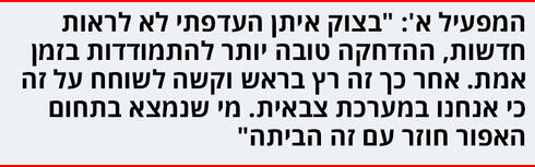 "במקרה הזה באתי למפקד שלי ואמרתי לו, 'שמע, אני מרגיש חרא'. ישבנו על כוס קפה ודיברנו. אם הייתי רוצה, היו יכולים לשלוח אותי לפסיכולוג, אבל לא הגעתי לרמות כאלה".
