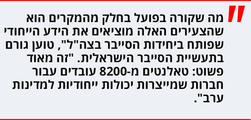 לא כולם משתכנעים מדבריו של רייזנר. "מה שקורה בפועל בחלק מהמקרים הוא שהצעירים האלה מוציאים את הידע הייחודי שפותח ביחידות הסייבר בצה"ל", טוען גורם בתעשיית הסייבר הישראלית. "זה מאוד פשוט: טאלנטים מ־8200 עובדים עבור חברות שמייצרות יכולות ייחודיות למדינות ערב".