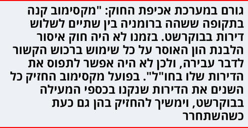 מקסימוב גם נשאר עם רכוש. במסגרת החקירה האינטנסיבית שניהלה, המשטרה ניסתה לאתר ולתפוס את נכסיו של מקסימוב שנקנו בכספי המעילה. אבל גורם במערכת אכיפת החוק מגלה לנו השבוע כי לא כל הרכוש שלו אכן נתפס. “תפסנו ראיות בתיק במהלך החקירה, שלפיהן מקסימוב קנה בתקופה ששהה ברומניה בין שתיים לשלוש דירות בבוקרשט הבירה”.
