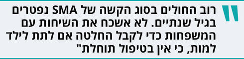פרופ' אביבה פתאל, מנהלת היחידה לנוירולוגיה ילדים בבית החולים דנה, טיפלה בעשרות ילדים בתרופה הראשונה ובקרוב תטפל בילדים נוספים בתרופה החדשה. "רוב החולים בסוג הקשה נפטרו בגיל שנתיים", היא מספרת. "לא אשכח את השיחות שהייתי צריכה לעשות עם המשפחות כדי לקבל ביחד החלטה אם להנשים את הילד או לתת לו למות בלי לטפל בו, כי אין בטיפול שום תוחלת. עכשיו, אחרי שנה של טיפולים, אנחנו פשוט נדהמים מהתוצאות. ילדים שכבר לא היו אמורים להיות איתנו, מצליחים לעמוד, וחלק אפילו מצליחים לעשות כמה צעדים סביב רהיטים. זה מעניק לנו אופטימיות בלתי רגילה לגבי שאר החולים".