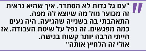 "היה נעים כמה מפגשים. פתוח, אינטליגנטי, אמיתי. דרכינו התפצלו. זה נפל על שיטת העבודה. אז הייתי הרבה יותר קשוח בגישה. אולי זה הלחיץ אותה. נגמר יפה. בדרך כלל הופכים לי את הבית. כי זו בעיטה, 'תעוף לי מהבית', ולא מקבלים את זה טוב. לה זה היה טכני מדי. כיבדתי. אמרתי לה, כשתרצי, תבואי. בחיבוק ואהבה. והיה ברור שתכבוש את העולם. האמנתי מיד. בלי מניפולציה. סקרנות ואהבה למקצוע".