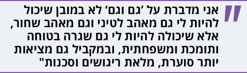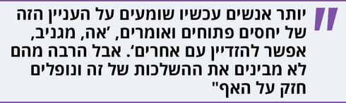 "חוץ מזה, יש את החרדה של אנשים עם נטיות אינטלקטואליות או אמנותיות מלהיות קלישאה. אז גם בעניין הזה אני רגועה - אין לי פחד להיות קלישאה, אני לא איזה פתית שלג ייחודי שכל מה שהוא עושה זה חד-פעמי ואינדיבידואלי. כן, יש תנועות עולמיות, יש טרנדים, וזה נכון שעכשיו יותר ויותר אנשים שומעים על העניין הזה של יחסים פתוחים ופוליאמוריה ואומרים, 'אה, מגניב, אפשר להזדיין עם אחרים'. אבל הרבה מהם בכלל לא מבינים את ההשלכות של זה ונופלים חזק מאוד על האף. פוליאמוריה מתאימה לאנשים מסוימים שיודעים מה הם עושים. זה קצת כמו עם סמים הזייתיים: יש אנשים שייקחו אמ-די או פטריות ויאכלו סרט ויגידו, 'איכס, סמים זה רע'. ויש אנשים שמודעים לעצמם ולגבולות שלהם. וזה לא רק זיונים. חלק מהחבילה של זוגיות פוליאמורית זה שיחות על גבי שיחות וכללים והבנות, חפירות אינסופיות, שלפעמים מעורבים בהם גם בכי וכעס וקנאה".