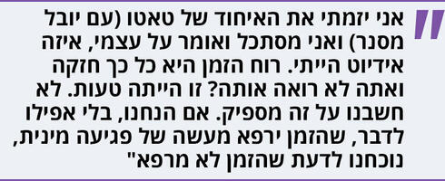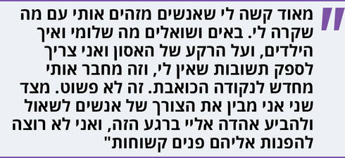 "אני עושה כמיטב יכולתי. אני בטיפול עוד לפני מה שקרה, והפסיכולוגית שלי עוזרת לי. גם לילדים מצאתי טיפול, ואנחנו כולנו מדברים עם אנשי מקצוע. אבל גם לבוא ולבנות על הפסיכולוגיה הרים וגבעות של ציפיות זה לא נכון".