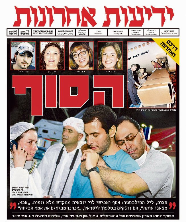 שבועיים הייתה אמורה לטייל בחופים הקסומים והספיקה רק חצי. בסרטון שצילמו חברים למסע, ערב לפני שנחשול המים האדיר שטף את קופיפי, רואים אותה שמחה ומחייכת במסיבת טרום סילבסטר. מפזזת בנעליים אדומות. על אמת ידה השמאלית בוהקת טבעת עם אבן שחורה. אלה יהיו הפריטים שיעזרו לשני בניה לזהות את גופתה בין אלפי המתים שהתנפחו מהמים והושחתו בחום. "כשהראו לי את הנעליים והטבעת, באתי לאבישי, חיבקתי אותו מאחור ואמרתי לו, 'מצאנו את אמא' ושנינו בכינו", אומר אסף. "היו המון צלמים מסביב אבל בכלל לא הרגשנו בהם, כי היינו כל כך שקועים בכאב". הרגע הזה, שצער והקלה התמזגו בו בערבובייה נוראה, הונצח במצלמתה של אביגיל עוזי, שליחת "ידיעות אחרונות" לתאילנד, התפרסם בשער העיתון, והפך לסמל האסון.