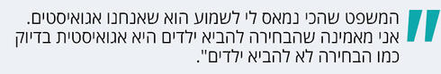 אני אדם נורמטיבי. הבחירה שלי היא לא עניין של אף אחד, והיא לא משפיעה על אף אחד. חשבתי הרבה מאוד לפני שהגעתי להחלטה הזו, והיא לא הופכת אותי לפחות טובה מאף אחד אחר. הבחירה הזו לא נובעת מלקות נפשית, פגיעה או טראומה שחוויתי. אני בסך הכול אישה שהחליטה שלא מתאים לה להיות אמא.