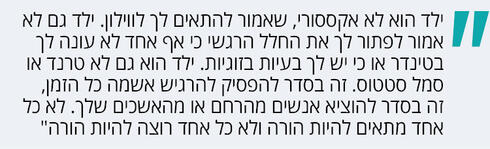 פעם תגובות כאלו הכעיסו אותי, אחר כך השלמתי עם זה כי ככה זה בישראל: נדחפים, מייעצים, מחליטים. התגובה היחידה שעדיין מצליחה לעצבן אותי היא "אה, אתה מאלה? אתה בטרנד?". זה לא טרנד, זו תפיסת עולם שמביעה חוסר רצון להיות הורה.