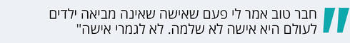 התחלתי לנסות להביא ילדים עם בעלי לשעבר, כי הוא מאוד רצה וכי הנחתי שמתישהו הרצון הממשי יגיע ועדיף לא לדחות את העניין הזה יותר מדי, וגם הייתי תחת האיום שאם אני לא רוצה אנחנו ניפרד, ולא הייתי מוכנה לשאת את האפשרות הזו.
