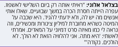 "מאז נישואיה, דורון בודד אותה לחלוטין מכולם, כולל ממני", אמר השבוע. "בשנה האחרונה לחייה, למעט כמה ציוצים ממנה, היא לא אמרה לי כלום, הפסיקה לבוא. הייתה גונבת פה ושם ביקורים ובאה אלינו הביתה והולכת. סיפרה לנו שהיא בהיריון ושהוא בעל נפלא. ובכל ביקור שלה ראיתי שהיא הולכת ומידרדרת מבחינה בריאותית".