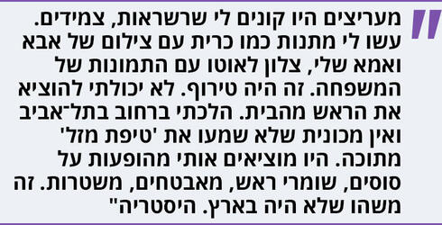 "יש לי טעם יקר, מה אני אעשה. אבל את רוב הכסף שהיה לי נתתי לאמא. לאחיות".