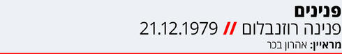 היום: מאז פנינה רוזנבלום (65) הספיקה להקים חברת קוסמטיקה, להיות ח"כית בכנסת ה־16 למשך כארבעה חודשים, להתחתן שלוש פעמים ולאמץ שני ילדים.