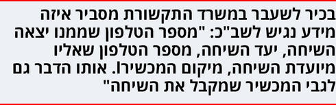 אבל ברוב המקרים, בקשות המשטרה לשימוש ב"כלי" לא נענו. בשיחה עם עמית מהשב"כ בנושא אחר, העלה קצין בכיר בלהב 433 שעסק בחקירות תיקי נתניהו את תסכולו: "יש כל כך הרבה עניינים מתוך החקירות האלה, שבחיפוש קצר אצלכם אפשר היה לפתור". הוא דיבר, למשל, על תדירות וזמני הפגישות בין גיבורי תיק 4000, שאפשר היה לאשר או להפריך דרך ה"כלי". הדברים נאמרו בחיוך: לשני הצדדים היה ברור שאין שום סיכוי שהשב"כ יסכים לבקשה כזאת.