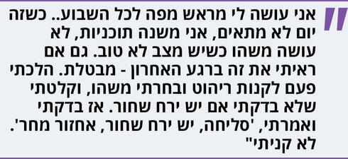 הוכחות? קשה לשכנע אותה לתת אבל בסוף היא מתרצה. "מישהו שאמרתי לו ביולי שהבורסה תיפול ושיוציא את הכסף, שלח לי את זה בווטסאפ להראות שאכן כך היה. זה נחמד כששולחים הודעות כאלה. או למשל מישהי שאומרת נגיד, 'אני לא אתחתן', ופתאום היא מתחתנת ויש לה ילדים והכל. יש כאלה שבאים אליי כמו לפסיכולוג, קובעים שכל שלושה חודשים באים לשעה ויושבים ומנקים את הראש וטוב להם. יש כאלה שבאים רק כשמופיעות צרות, וזה עוזר להם".