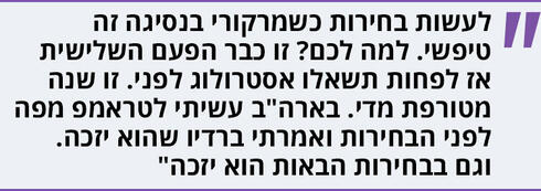 "אני לא רוצה להיכנס לזה כי כל רגע הכל משתנה, זו שנה מטורפת מדי עם פוליטיקה כל כך לא יציבה. זה לא שזו שנת בחירות נורמלית, זה משהו אחר, המצב נורא שונה".