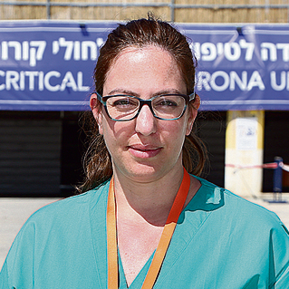 המשפחות של החולים לא לידם. אנחנו איתם בשיחה טלפונית מדי יום. אין ליד החולים אף אחד. הם לבד כשמנשימים אותם, והם לבד, חלילה, כשהם נפרדים מהעולם. זה קשה. השיחה של הצוות עם אשתו של המטופל שנפטר אצלנו הייתה מאוד קשה. זאת מציאות הזויה. ובבית מחכים לי הילדים שלי שאני לא רואה. את המחשבות עליהם אני צריכה לשים בקופסה ולארוז בצד. לתת את כל־כולי למשימה.