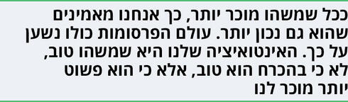 "אני חושב שממילא הם משתמשים באינטואיציה, מה שכן יש מקום זה להתייעצות. לא הייתי אומר שכדאי שהוא יחליט אינטואיטיבית ופשוט ילך על זה. צריך לחשוב עוד, לתכנן, לדבר עם עוד אנשים וכמובן, אחרי שבדקת ושקלת, יש מקום לישון על זה כדי לתת לדברים להתגבש".