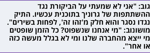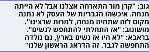 גוב: "קרן מור התארחה אצלנו אבל לא הייתה מנחה. איכשהו הגבריות של העסק לא נתנה מקום לזה שתהיה מנחה".