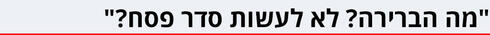 "תגידי, מה הייתה הברירה שלנו? לתת לילדים ולנכדים שלנו למות ברעב? לא לעשות סדר פסח? אלוהים גדול".
