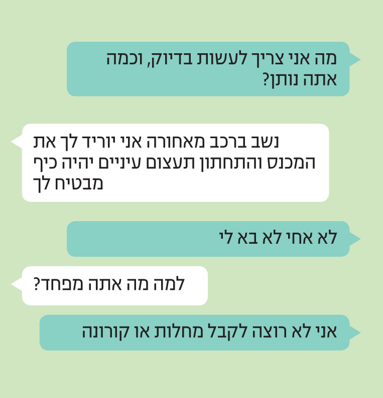 "בוא ניפגש, נשכב ברכב ואני ישלם לך כסף. אחרי הקורונה יהיו הרבה מבצעים ותוכל לקנות דברים"