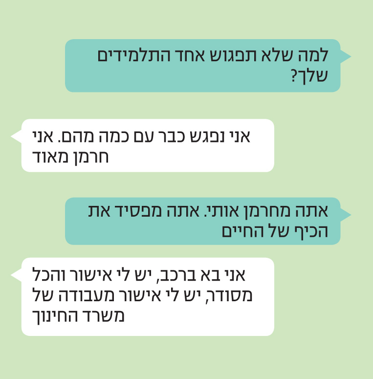 בן 14: "אני לא רוצה לקבל מחלות או קורונה. למה שלא תפגוש אחד התלמידים שלך?"