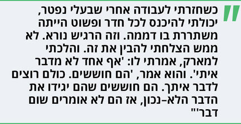 הראייה האופטימית הזאת לא באה מיד, כמובן. “כשחזרתי לעבודה לראשונה אחרי שדייב נפטר, זה היה כאילו יכולתי להיכנס לכל חדר ופשוט הייתה משתררת בו דממה. הייתי משתיקה חדרים כשהייתי דורכת בפתח הדלת. אתה יודע, בדרך כלל אני נכנסת לחדר לפני פגישה, וכולם מפטפטים ושואלים שאלות. ואחרי המוות של דייב הייתה שתיקה ממש רועמת. וזה הרגיש נורא. לא ממש הצלחתי להבין את זה. והלכתי למארק, אמרתי לו: 'אף אחד לא מדבר איתי'. והוא אמר, ׳הם חוששים. כולם רוצים לדבר איתך. הם חוששים שהם יגידו את הדבר הלא־נכון, אז הם לא אומרים שום דבר׳. לא הבנתי את זה בכלל. פשוט הרגשתי שיש שקט טהור. והוא הצליח לא רק להגיד לי את זה, אבל הוא גם הלך וניהל כמה שיחות עם כמה מהאנשים שקרובים אלינו יותר ואמר, ‘חבר'ה, דברו איתה. פשוט תדברו איתה. כולם שותקים סביבה ואנחנו חייבים לתקן את זה’”.