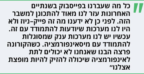״כל מה שעברנו בשנתיים האחרונות עזר לנו מאוד להתכונן למשבר הזה. לפני כן לא ידענו מה זה פייק־ניוז. ולא היו לנו מערכות שיודעות להתמודד עם זה. עכשיו יש לנו מערכות ענק שמסוגלות להתמודד עם מיסאינפורמציה. כשהקורונה פרצה הבנו שאנחנו לא יכולים לתת לאינפורמציה שיכולה להזיק להיות מופצת אצלנו. הבנו גם שאנחנו לא המומחים בנושא. אז מיד התחלנו לעבוד עם ארגון הבריאות העולמי והמרכז לבקרת מחלות כדי להבין אם האינפורמציה מזיקה או לא, ואם היא מזיקה אנחנו מורידים אותה. היינו מאוד אגרסיביים״.