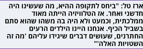 "אתה מדבר על זמן אחר לגמרי, זמן שבו אין רשתות חברתיות ואין את העניין הזה של כל אחד מייצר כל מיני בדיחות ושולח, אין וואטסאפ, יש ערוץ 1 ושמינית הערוץ הניסויי, ואין חומרים, אין כלום. פתאום באנו אנחנו, שיודעים להגיב מהרגע להרגע, יתרון גדול. שמענו משהו בחדשות, וידענו להגיב בערב, משהו שלא היה אז בכלל. הבאנו מיומנויות מגלי צה"ל של לעשות מהר, לערוך מהר, וארז היה עורך־על וידע להעמיד תוכניות שלמות מאוד מהיום להיום".