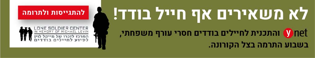 לא משאירים אף חייל בודד. ynet והתכנית לחיילים בודדים חסרי עורף משפחתי, שבוע התרמה בצל הקורונה. להתגייסות ותרומות היכנסו ללינק