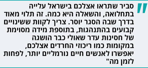"סביר שכן, והשאלה היא כמה. אני לא חושב שתוכלו להמשיך להישאר במספרים הנמוכים שבהם הייתם, אבל זה תלוי מאוד בדרך שבה הסגר יוסר, ואיך תגיבו כשהמספרים יתחילו לגדול שוב. אין פה נוסחאות קסם. צריך לקוות ששינויים קבועים בהתנהגות, כמו חבישת מסכות כל הזמן ושטיפת ידיים, בתוספת מידה מסוימת של חסינות עדר שאולי כבר הושגה במקומות כמו ריכוזי החרדים אצלכם, יאפשרו לאנשים חיים נורמליים יותר, לפחות לזמן מה".
