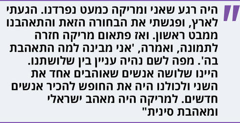 "הייתי קצת לחוץ. ואז מריקה חזרה ואמרה, 'פאק, אני מבינה למה התאהבת בה'. מפה לשם נהיה עניין בין שלושתנו, שהוא הכי יפה שראיתי בחיים שלי. היינו שלושה אנשים שעובדים על השדים שלהם ואוהבים אחד את השני ולכולנו היה החופש להכיר אנשים. למריקה היה מאהב ישראלי ומאהבת סינית".