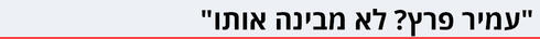 "הוא התקשר ביום שלישי האחרון. דיברנו קצת, אבל מה יש להגיד? תקשיבי, אני עד היום לא מבינה למה עמיר פרץ עושה את זה. אני מאוד מחבבת את עמיר, יש לו זכויות מאוד רבות, הוא באמת מנהיג חשוב בעיניי. הוא איש שלום בכל נימי נפשו, והוא עכשיו יהיה חתום על סיפוח. משמולי באמת אף פעם לא היו לי ציפיות, אבל את עמיר? אני באמת לא מבינה.