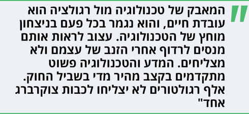 "הפרלמנטרים נושאים נאומים חוצבי להבות - והתעשייה מצחקקת. המאבק של טכנולוגיה מול רגולציה הוא עובדת חיים, והוא נגמר בכל פעם בניצחון מוחץ של הטכנולוגיה. עצוב לראות אותם מנסים לרדוף אחרי הזנב של עצמם ולא מצליחים. המדע והטכנולוגיה פשוט מתקדמים בקצב מהיר מדי בשביל החוק. אלף רגולטורים לא יצליחו לכבות צוקרברג אחד".