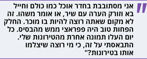 "כן, נפגעתי. הרגשתי מאוד לא נוח, לקחתי את הביקורות האלה בצורה אישית, יותר מכל ביקורת אחרת. צה"ל הוא זה שקבע בדיוק מה יהיה איתי, לפי מסלול הטאלנט. ואני עשיתי בדיוק מה שרצו, כל פרט".