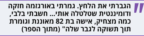 "היא לא שונה. אפשר לאהוב ואפשר להרגיש פרפרים בבטן גם בגיל הזה. האם זה הפתיע אותי? לא ממש. אני צעירה ברוחי ואני מאמינה באהבה. סטוצים זה לא זה".