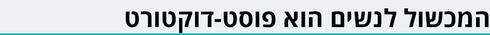 "המכשול הגדול להתקדמות נשים נותר בשלב הפוסט-דוקטורט, שבמקצועות ההנדסה מחויב להתבצע בחו"ל. זו דרישה שמהווה קושי גדול להרבה מאוד נשים, שחוששות עדיין להוביל מהלך של עזיבת המשפחה את הארץ, תוך הפסקת עבודתו של הבעל. זו הסיבה שבסגל האקדמי הבכיר יש פחות נשים. דווקא בימים אלה של משבר הקורונה ישנן הקלות בתחום הפוסט-דוקטורט, ואולי זה יסייע".