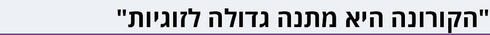 בשורה התחתונה, הקורונה ממש חיזקה את הבחירה שלי ביואב כפרטנר לחיים האלה, ואני לא חושבת שסגר נוסף יערער את היסודות המאוד חזקים שיש בינינו. יכול להיות שניכנס קצת לדיכאון, וגם שלילד יהיה קשה עם הגעגועים לסבא וסבתא, אבל זה עשה לנו טוב לזוגיות. אנחנו נשרוד גם את הגל השני - אני רק מקווה שהפעם אני לא אעלה חמישה קילוגרמים.