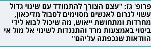 "עצם הצורך להתמודד עם שינוי גדול עשוי להכניס אנשים לדיכאון ולייאוש, לגרום להם לחרדה ובמקרים מסוימים, כאמור, להוביל לביטוי של מרד והתנגדות לשינוי אל מול אי הוודאות שנכפתה עליהם. זאת, לעומת כאלה שרואים בשינוי הזדמנות להתפתח ולצמוח ממנו", מוסיף גז.