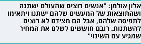"אנשים רוצים שהעולם ישתנה ושהתוצאות של המעשים שלהם ישתנו ויתאימו לתפיסה שלהם, אבל הם מצידם לא רוצים להשתנות", אומר אולמן. "רובם חוששים לשלם את המחיר שמגיע עם השינוי, שבטווח הקצר עשוי לעורר אי נוחות מסוימת וחרדה מהלא נודע".