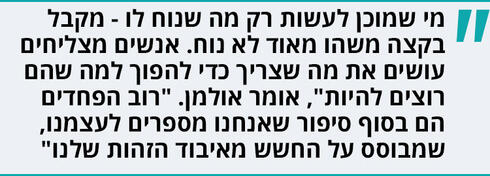 הסיפור של אולמן מעורר הערכה, זה ברור. סיפור הוליוודי עם סוף טוב, אסקפיזם במיטבו. אבל אם נחזור רגע לעולם האמיתי - רוב בני האדם חוששים משינויים, על אחת כמה וכמה כשמדובר בשינויים דרסטיים. מחקרים שנערכו סביב הנושא מצאו, כי הפחד משינוי הוא אחד הפחדים הנפוצים ביותר. בני האדם, טוענים המומחים, אוהבים יציבות ומעדיפים להיצמד להרגלים ישנים, גם אם הללו כבר לא באמת משרתים אותם.