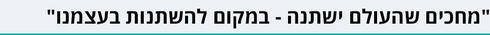 אז אם נתייחס רגע למציאות הנוכחית בצל המגפה, ייתכן שגם אלו שיחליטו שלא לעשות שינויים, ויבחרו להמתין עד שהיא תסתיים, ייצאו מהתקופה הזו מחוזקים?