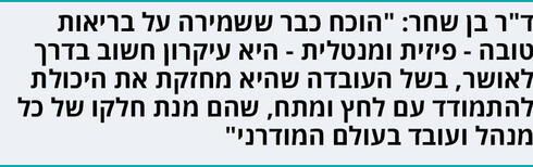"מה שהרבה אנשים לא מבינים זה שלמעשה לחץ הוא לאו דווקא הבעיה. חשבו על האנלוגיה הבאה: לאחר אימון מאומץ בחדר הכושר, אנחנו יכולים להתחזק כמו שצריך באמצעות מתן מנוחה ראויה לשרירים שלנו בין סטים וגם בין אימונים. באופן דומה, מתח מחוץ לחדר הכושר יכול לחזק אותנו ברמה הפסיכולוגית, אך רק בתנאי שיש לנו די זמן להחלמה ממנו", מסביר בן שחר.