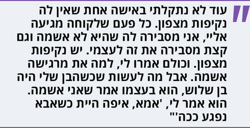 "כשהיינו בשיקום ראש עם בן, הלכנו לשיחת חתך אצל מנהל השיקום. שאלתי אותו איך אני יכולה להעלות לבן את המוטיבציה כדי שהוא יצליח להתקדם. ואז הרופא ההוא אומר לי, 'את תתרכזי בלהיות בת הזוג'".