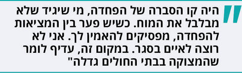 יחד עם זאת, הוא מתעקש שמעולם לא תפס את הקורונה כאפיזודה זניחה. הוא פשוט לא מאמין שצריך להרוג את הכלכלה כדי להילחם בה. "אני מקשיב, אני מרגיש ושומע את המצוקה, את הבעיה ואת הקושי של החברה", הוא אומר. "את ההתרסקות של אנשים. אנחנו ברפואה מטפלים באמצעים כמו תרופות וניתוחים. פתאום פה, השתמשנו באמצעי טיפול כלכלי. מי אמר שזה בכלל כלי ששייך לנו? שלנו כמנהלים של מערכת הבריאות מותר להשתמש בכלי כזה? קיבלנו רשות להשתמש בכלים כלכליים בעלי עוצמה אדירה, וצריך להשתמש בהם בחרדת קודש ולהבין שיהיו השלכות שאנחנו לא רגילים לראות. כל מנהיג רפואי שמשתמש בכלי הזה בלי לקחת בחשבון את ההשלכות האלה חוטא לציבור".