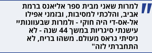 "אני תקוע כבר ארבעה חודשים בלעדיה", הוא מקונן. "אני באיזשהו תהליך של אִזרוח איתה, אבל אי-אפשר היה להכניס לכאן אזרחים לא ישראלים בתקופת הקורונה. והיה קשה לעבור תקופה כזו כל כך לבד".