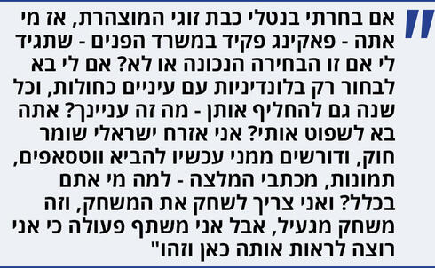 "אם לי בא לבחור רק בלונדיניות עם עיניים כחולות, וכל שנה גם להחליף אותן - מה זה עניינך? אתה בא לשפוט אותי? אני אזרח ישראלי שומר חוק, ומותר לי לעשות איזה בחירות שאני רוצה. ודורשים ממני עכשיו להביא ווטסאפים, תמונות, מכתבי המלצה - למה מי אתם בכלל? ואני צריך לשחק את המשחק, וזה משחק מגעיל, אבל אני משתף פעולה כי אני רוצה לראות אותה כאן וזהו".