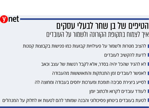 "לא צריך להימנע מעצב וכאב. כשאנחנו מקבלים את הרגשות, הם גם יעברו. אחרי הקבלה, עלינו להציב לעצמנו מטרות ופעילויות קבועות. קל מאוד, בעיקר כשעובדים מהבית, ליפול לרוטינה לא בריאה. חשוב לשמור על פעילויות חיוניות. פגישות יותר אינטימיות בין קולגות בקבוצות קטנות".
