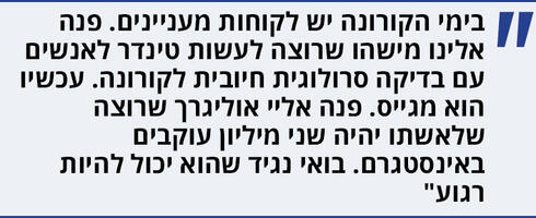 "בימי הקורונה יש לקוחות מעניינים", הוא מהרהר. "פנה אלינו מישהו שרוצה לעשות טינדר לאנשים עם בדיקה סרולוגית חיובית לקורונה. עכשיו הוא מגייס. פנה אליי אוליגרך שרוצה שלאשתו יהיה שני מיליון עוקבים באינסטגרם. בואי נגיד שהוא יכול להיות רגוע".