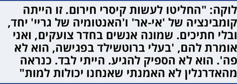 "זה היה נורא", הוא משתנק בטלפון גם עכשיו. "הוא בחור עדין שלא מבין איך זה קרה לו".