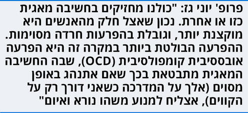 "כולנו מחזיקים בחשיבה מאגית כזו או אחרת. נכון שאצל חלק מהאנשים היא מוקצנת יותר, וגובלת בהפרעות חרדה מסוימות. ההפרעה הבולטת ביותר במקרה זה היא הפרעה אובססיבית קומפולסיבית (OCD), שבה החשיבה המאגית מתבטאת בכך שאם אתנהג באופן מסוים (אלך על המדרכה כשאני דורך רק על הקווים), אצליח למנוע משהו נורא ואיום. לא פעם אנשים ממשיכים ונאחזים בסימפטום שלהם כמעין 'תעודת ביטוח', שמונעת את הסיכוי שיקרה להם או לקרוביהם משהו רע.