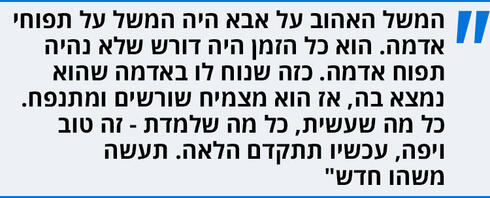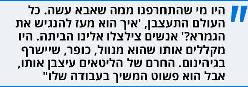 "אמא שלי שמרה בקפדנות יתר שלא יהיו אורחים, רק המשפחה. זה הזמן שלנו איתו. ואז כשהוא היה מגיע הביתה הוא תיאר לכולנו עם מי הוא היה, ומה הוא עשה. כשהייתי בכיתה א' המורה אמרה עליי שיש לי פוטנציאל לא ממומש. בקיצור - הייתי דיסלקט, דיסגרף ועם בעיות קשב וריכוז. רק שאז לא היו אבחונים. אז אבא כל יום שישי בלילה הכריח אותי לקרוא איתו את כל פרשת השבוע. זה שאני לא יודע לקרוא טוב פגע בו עד עמקי נשמתו. הוא לא ויתר.